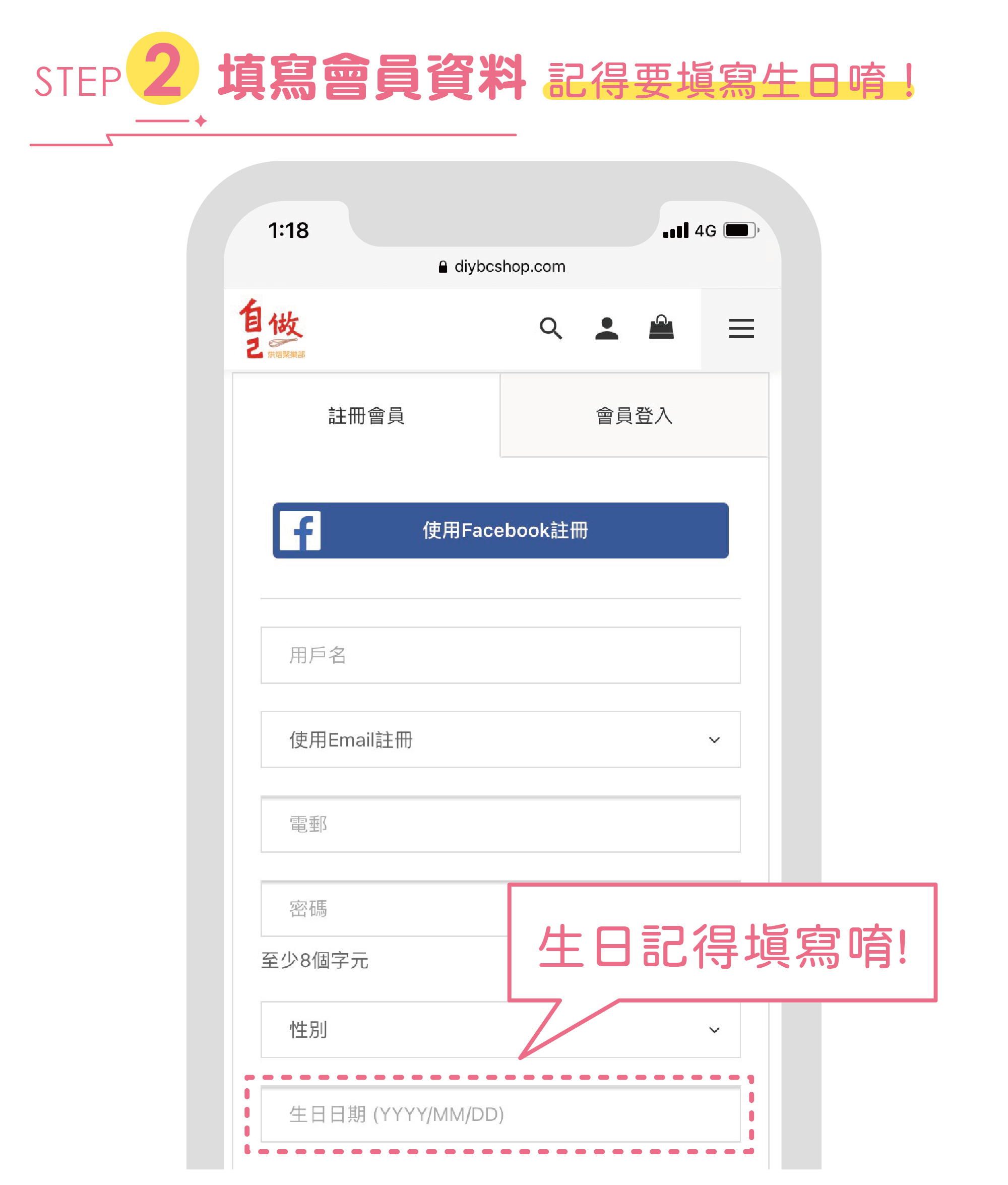 1. 依照相關國際法規需保護13歲以下兒童隱私,故材料包網站不提供13歲以下兒童註冊,及兌換生日購物金活動。