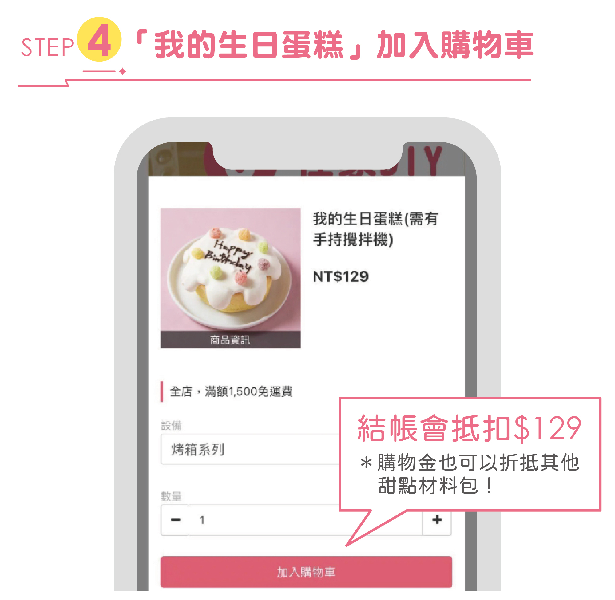 2. 購物金僅限自己做材料包官網使用,限折抵甜點材料包或手捏包,不可換現或找零、折抵烘焙配件。