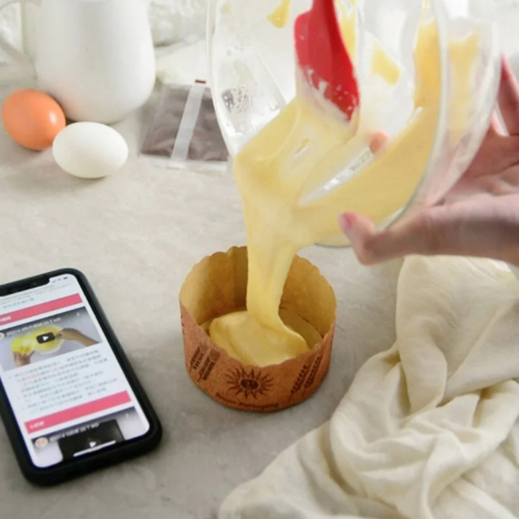 將蛋糕麵糊倒入紙模中放入烤箱(或使用氣炸鍋)烘烤