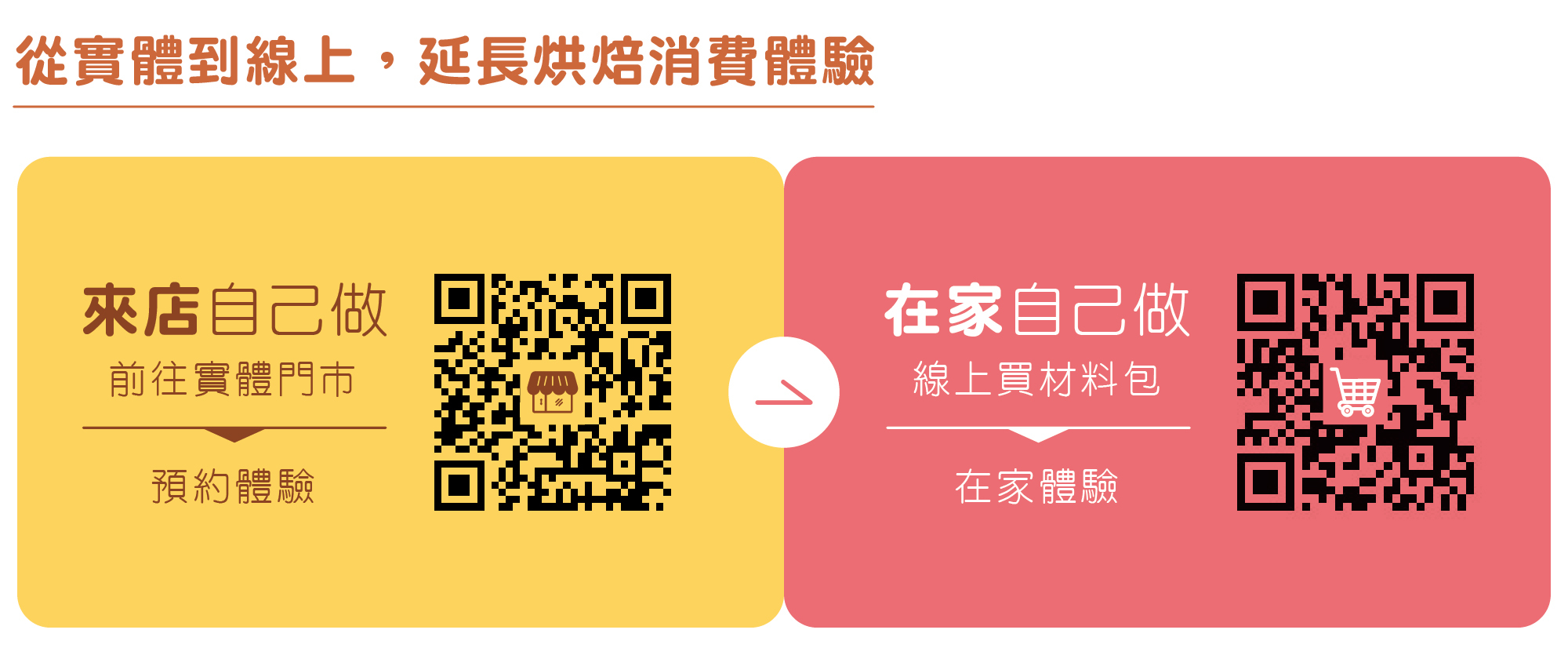 2020年8月,因應新冠疫情,我們推出了甜點材料包,可依家中不同的設備、器具選擇適合的甜點,所需食材、模具都準備好了,只需要在家等收貨,打開線上食譜跟著diy,就可以輕鬆完成一個個美味的甜點,讓你隨心所欲享受無處不在的烘焙樂趣。