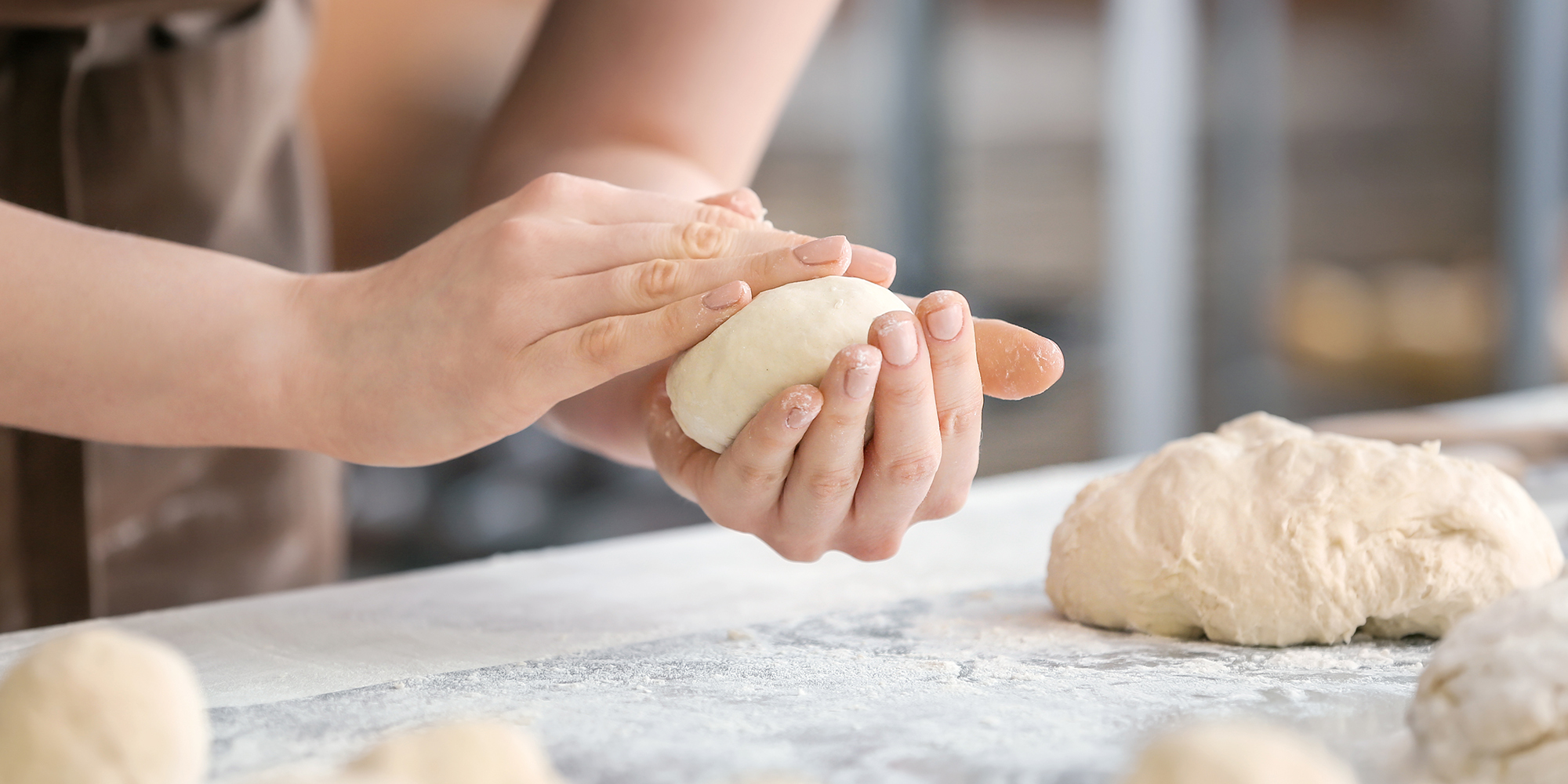 徒手揉製麵糰時,可以利用手掌心下方較厚處推開麵糰。